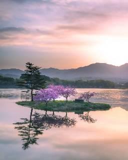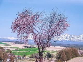 ハートの桜と雪山
