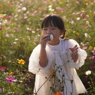 コスモス畑のまんなかでおにぎりタイム🍙🌸