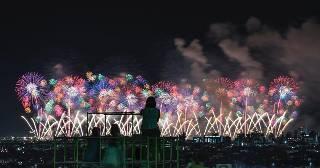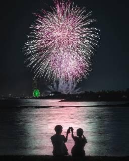 花火を見ながら乾杯